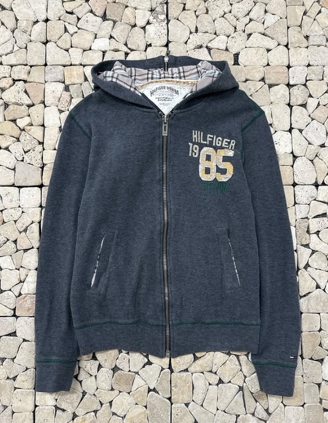 타미힐피거 차콜 배색 후드집업