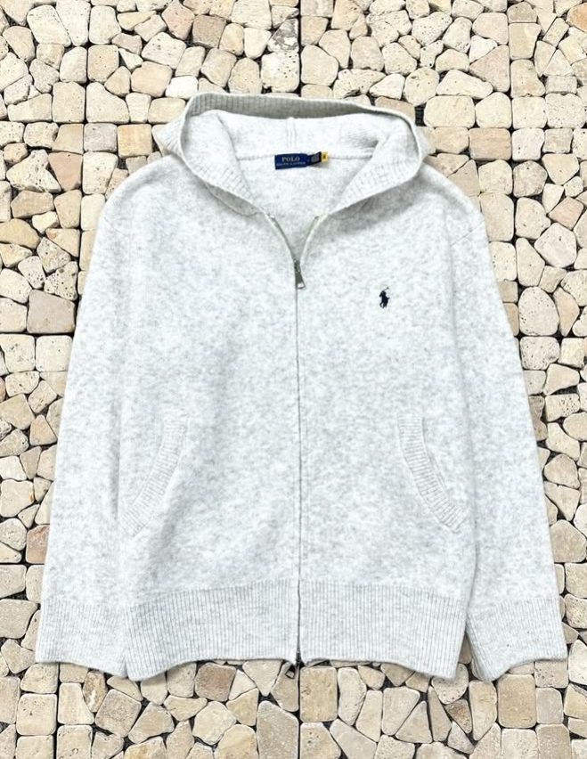 폴로 백멜란지 울 니트 후드집업