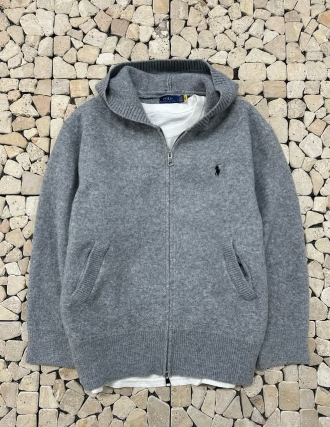 폴로 그레이 울 니트 후드집업