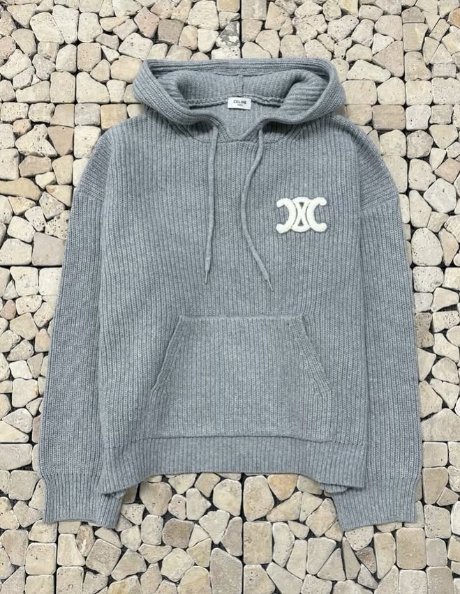 셀린느 그레이 뽀글패치 니트 후드