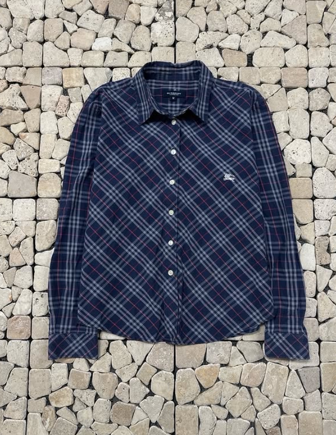 버버리 네이비 체크 라인 셔츠