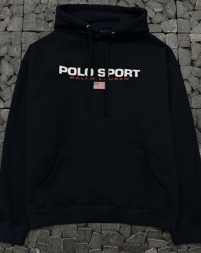 폴로 네이비 스포츠 기모 후드