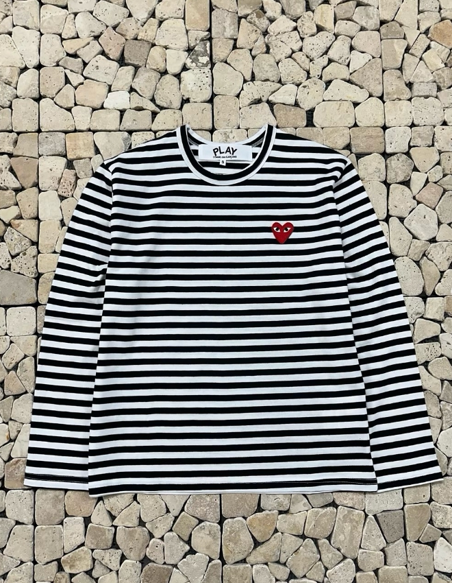 꼼데 블랙 스트라이프 롱 슬리브