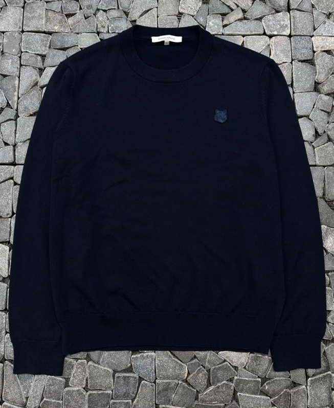 키츠네 네이비 원헤드 라운드 니트