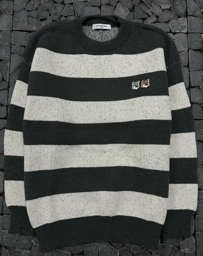 키츠네 차콜 단가라 라운드 니트
