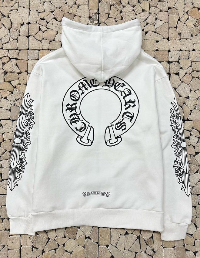 크롬하츠 화이트 홀스슈 기모 오버핏 후드집업