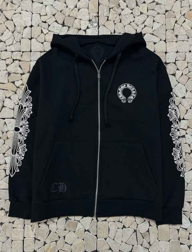 크롬하츠 블랙 홀스슈 기모 오버핏 후드집업