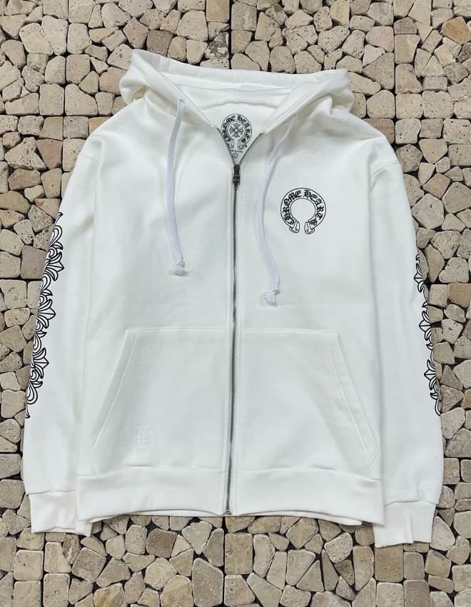 크롬하츠 화이트 홀스슈 기모 오버핏 후드집업
