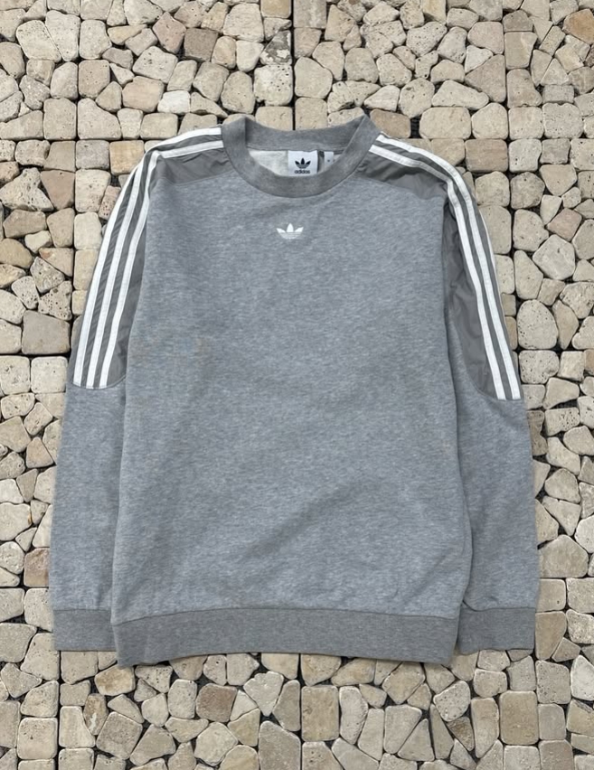 아디다스 그레이 삼선 중앙로고 맨투맨