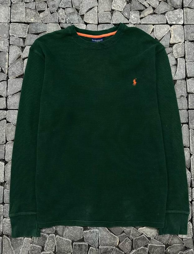 폴로 그린 라운트 와플 니트
