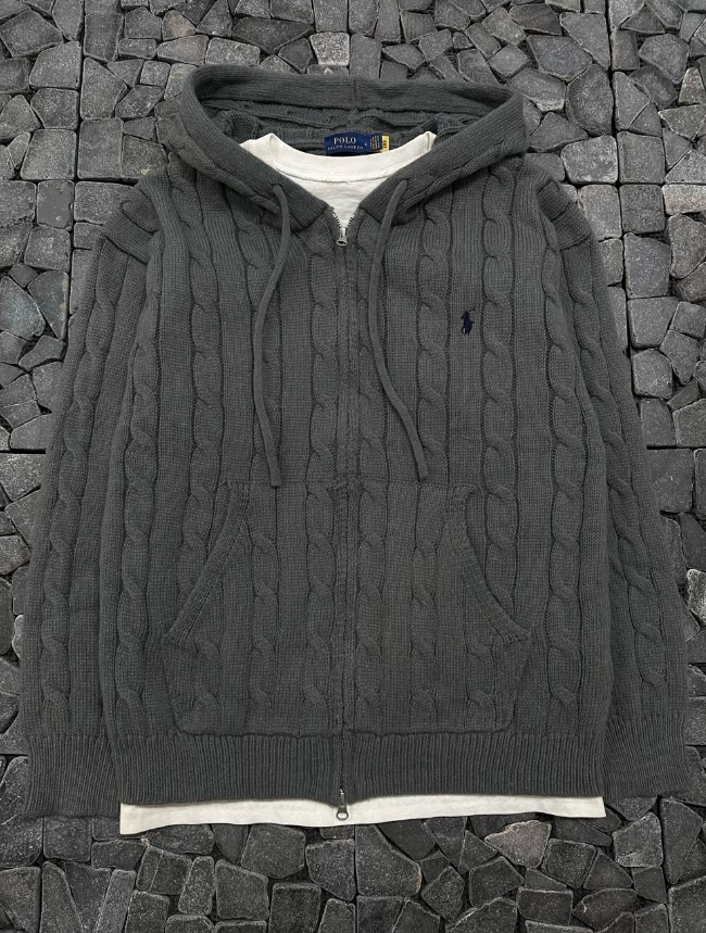 폴로 차콜 케이블 후드니트집업