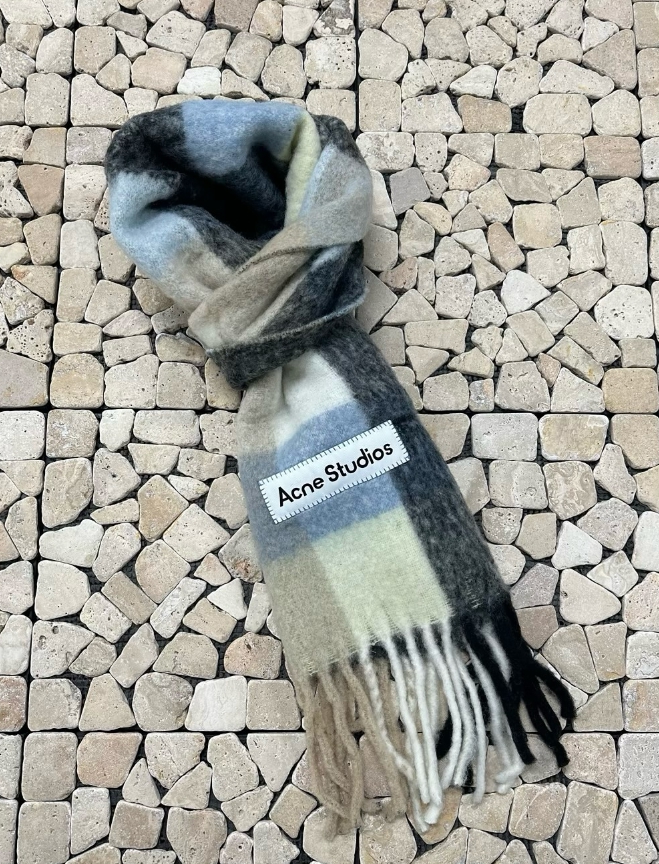 아크네 블루베이지 모헤어 체크 머플러