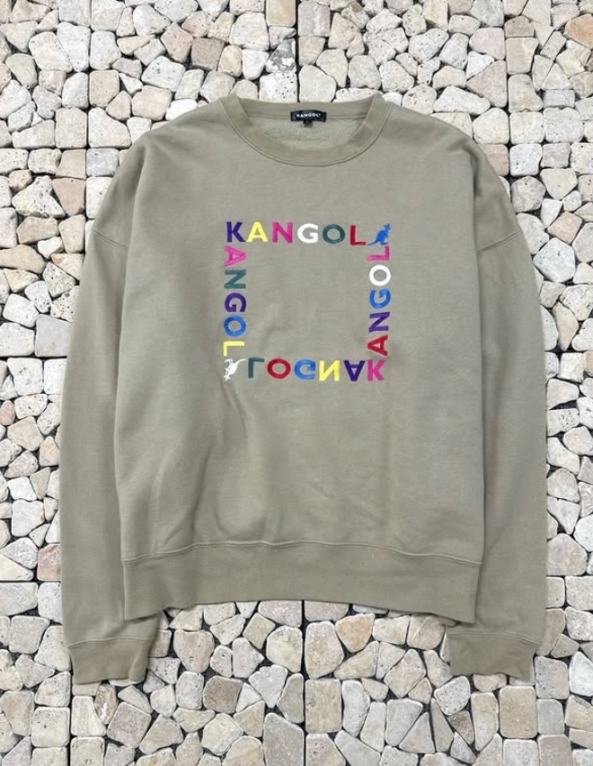 캉골 베이지 컬러자수 오버핏 맨투맨