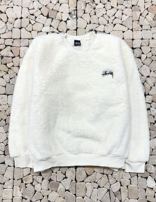 스투시 크림 양털 자수 오버 맨투맨