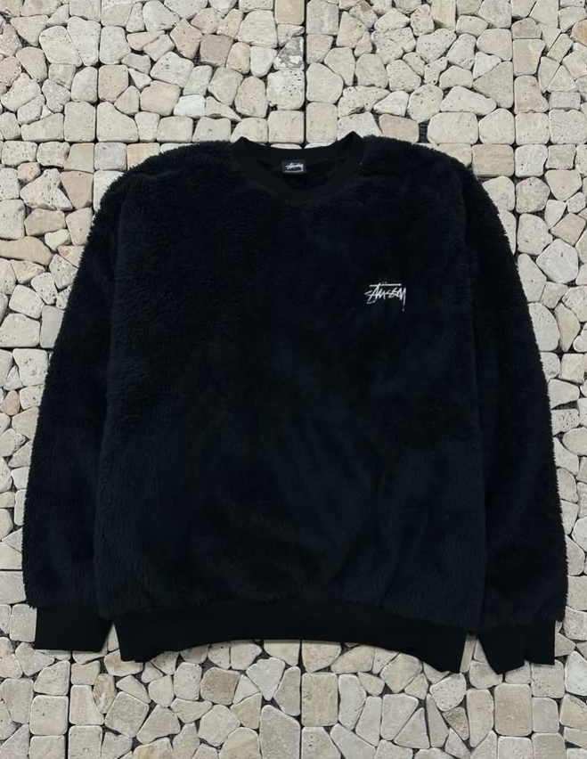 스투시 블랙 양털 자수 오버핏 맨투맨