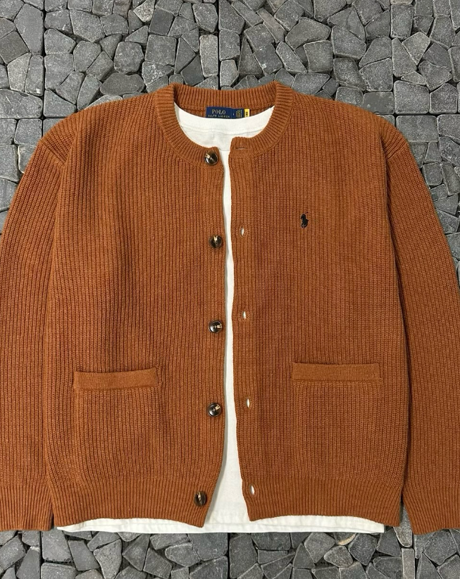 폴로 오렌지 울 포켓 라운드 가디건