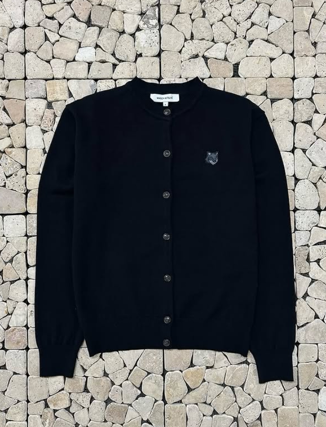 키츠네 블랙 컬러패치 라운드 가디건