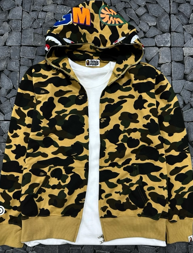 베이프x샤크 그린 카모 후드집업