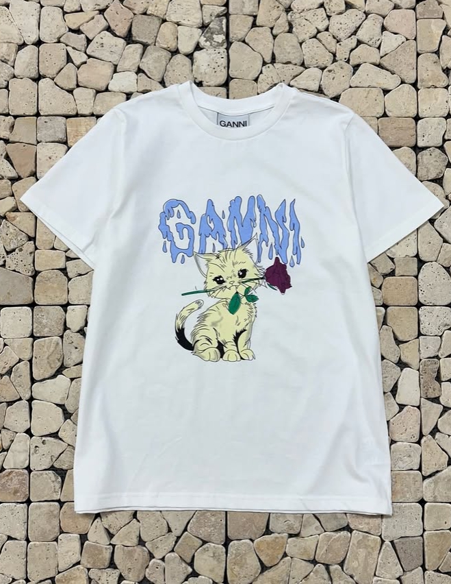 가니 화이트 로즈 캣 반팔