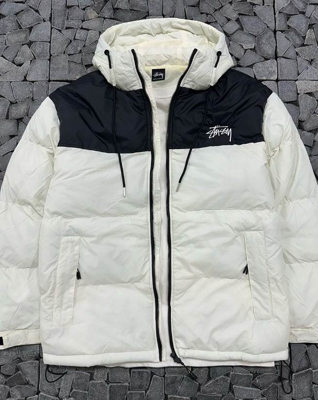 스투시 아이보리 배색 후드 패딩
