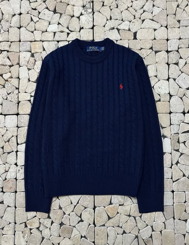 폴로 네이비 꽈배기 라운드 니트