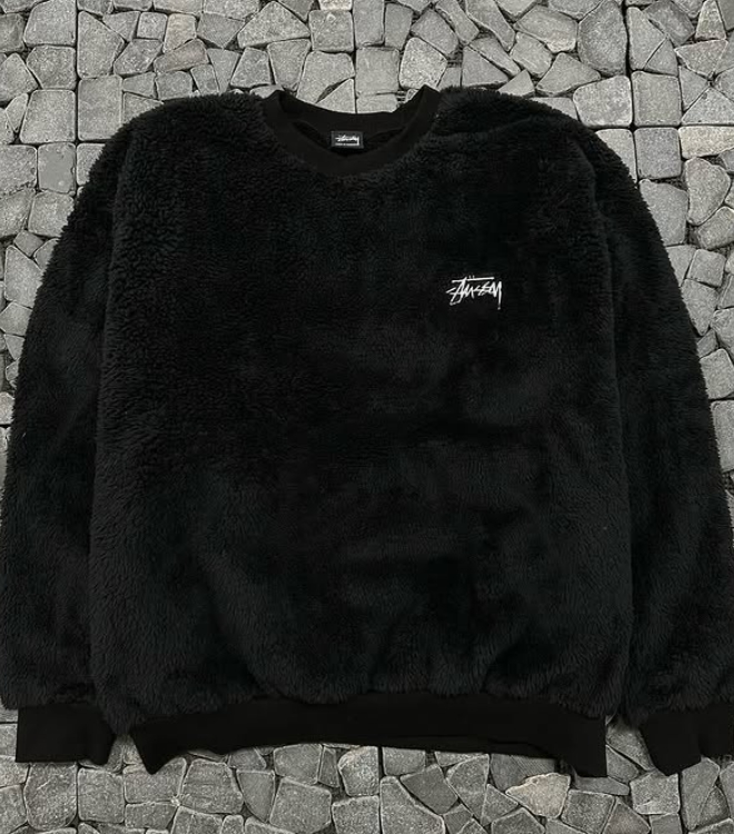 스투시 블랙 양털 자수 맨투맨