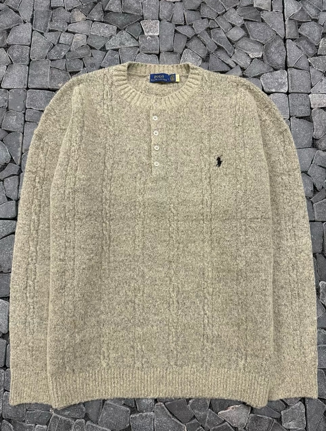 폴로 베이지 단추 헨리넥 니트