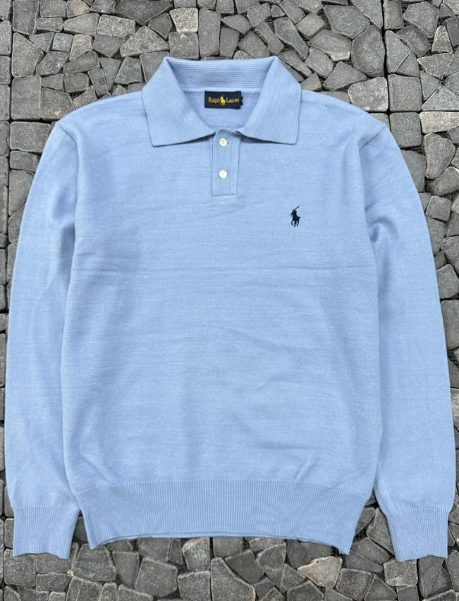 폴로 스카이블루 카라 니트