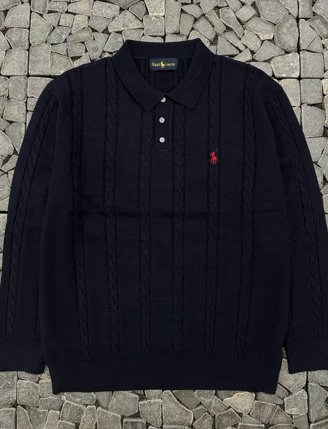 폴로 네이비 트위스트 카라 긴팔니트