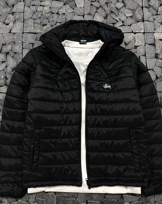 스투시 블랙 쓰리지퍼 후드 경량패딩