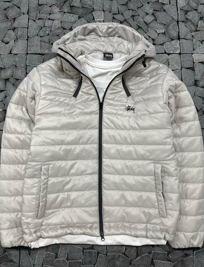 스투시 그레이 쓰리지퍼 후드 경량패딩