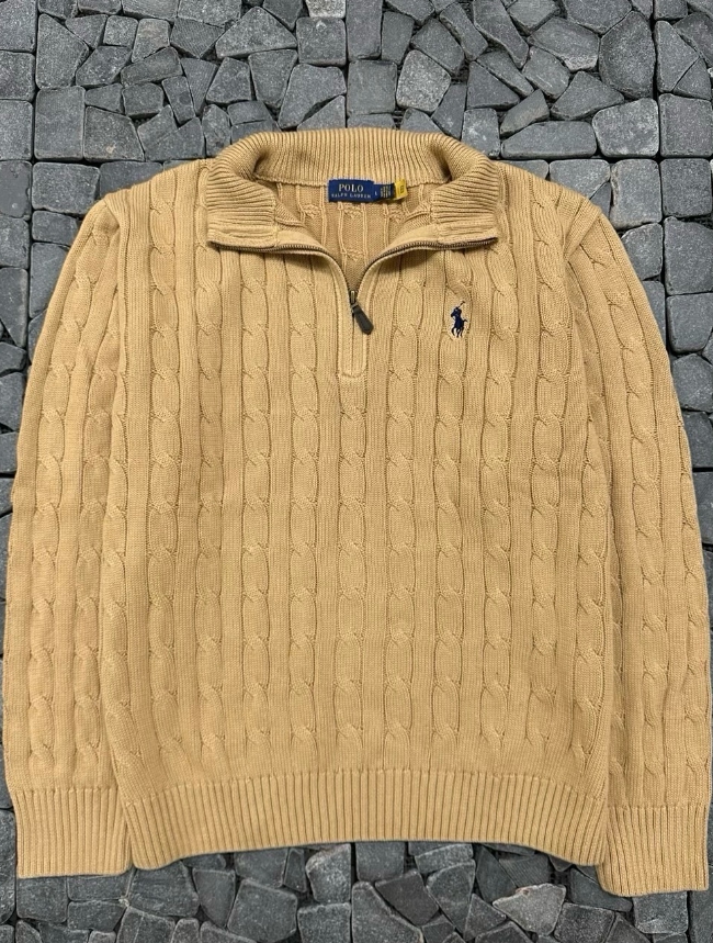 폴로 베이지 피마코튼 케이블 반집업 니트