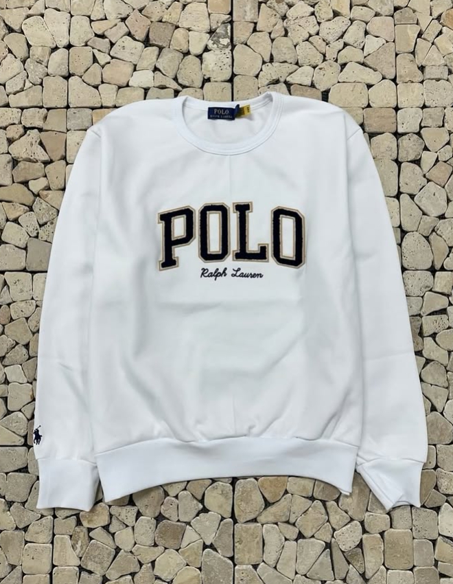 폴로 화이트 부클로고 플리스 맨투맨