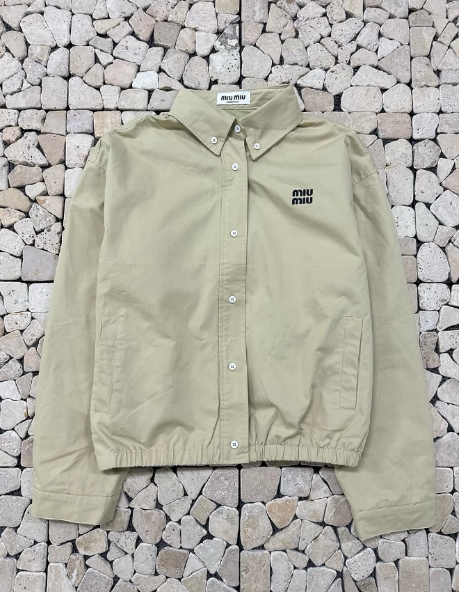 미우미우 베이지 크롭 코치 자켓