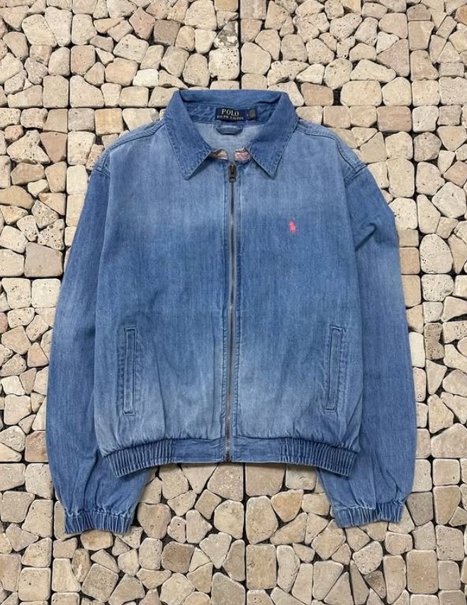 폴로 연청 핑크자수 데님 자켓
