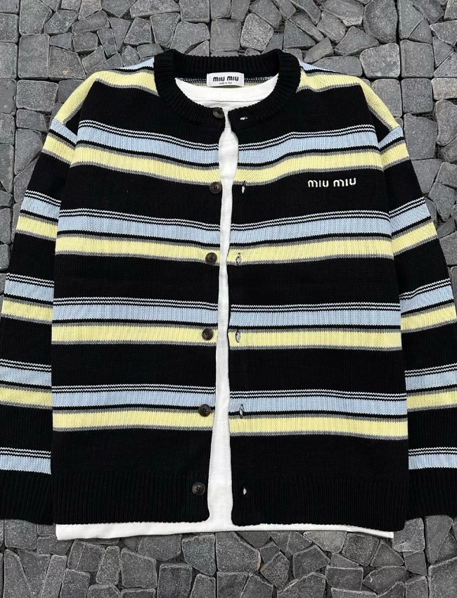 미우미우 블랙 단가라 라운드넥 가디건