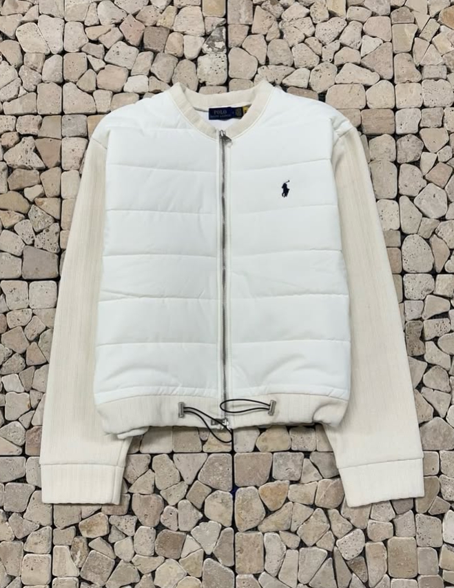 폴로 아이보리 벨로아 크롭 패딩 가디건