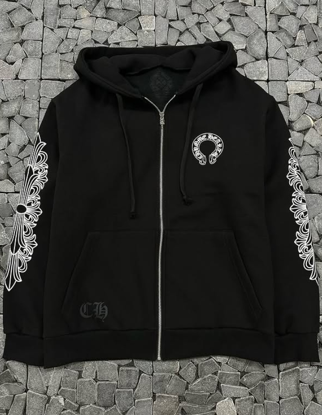 크롬하츠 블랙 홀스슈 기모 후드집업