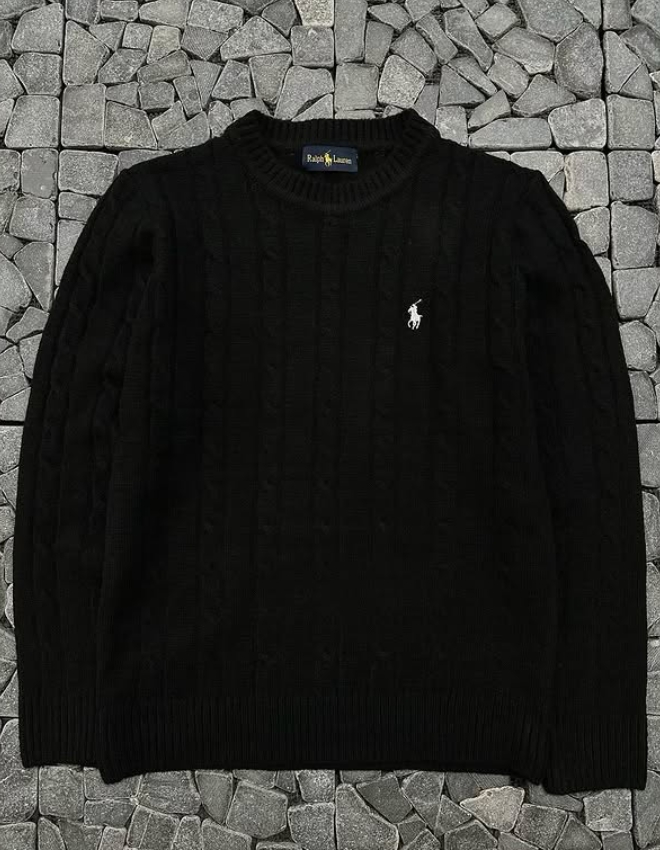 폴로 블랙 기본 꽈배기 긴팔 니트