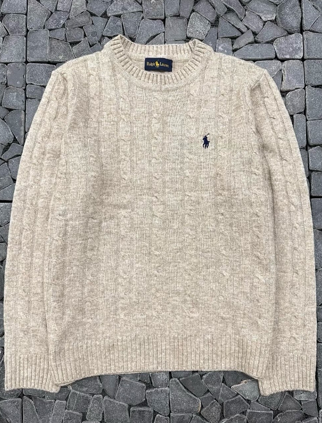 폴로 오트밀 기본 꽈배기 긴팔 니트