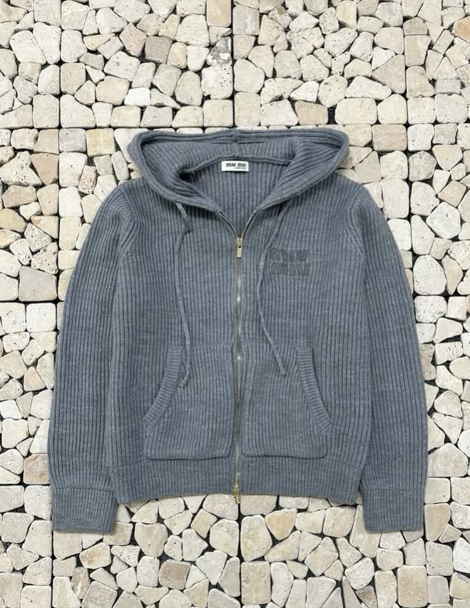 미우미우 그레이 울 니트 후드집업