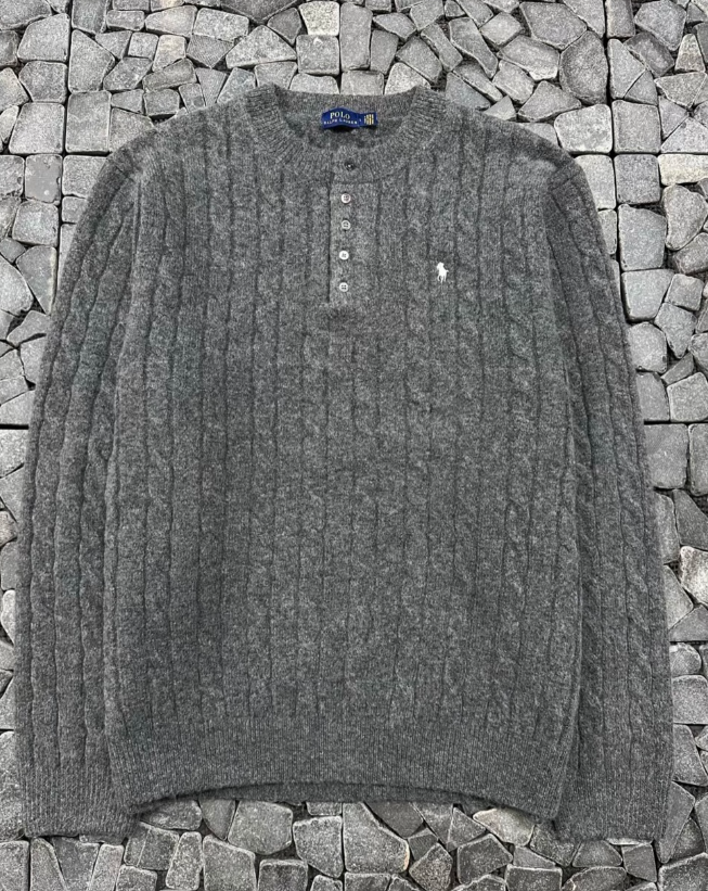 폴로 차콜 꽈배기 헨리넥 니트