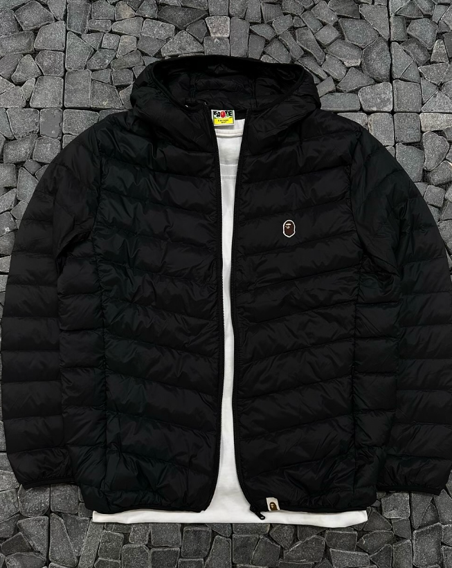 베이프 블랙 경량 후드패딩