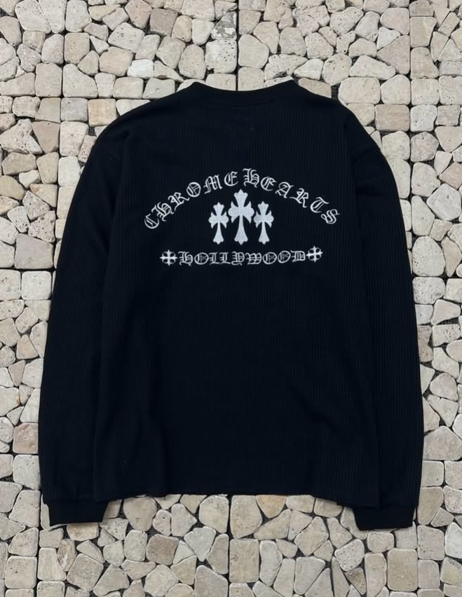 크롬하츠 블랙 헨리넥 긴팔 니트