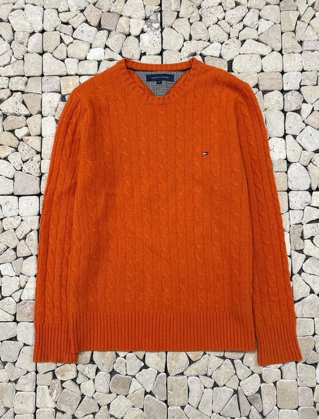 타미 오렌지 케이블 라운드 니트