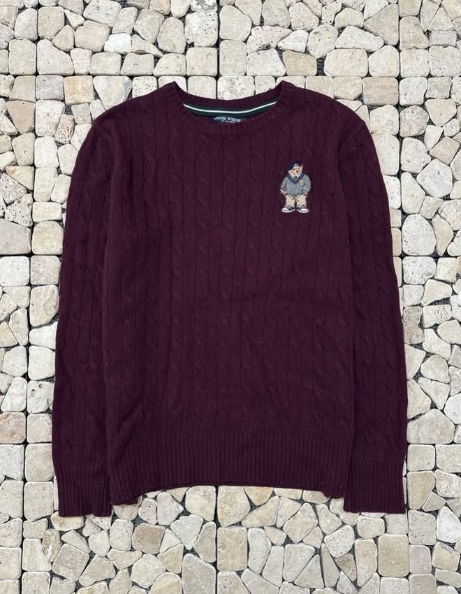 티니위니 다크버건디 케이블 라운드 니트