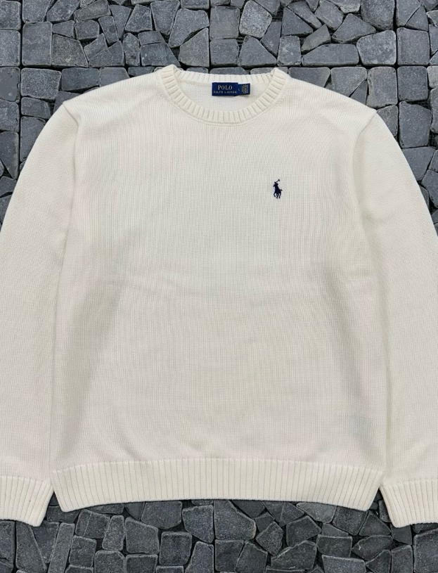폴로 아이보리 코튼 크루넥 니트
