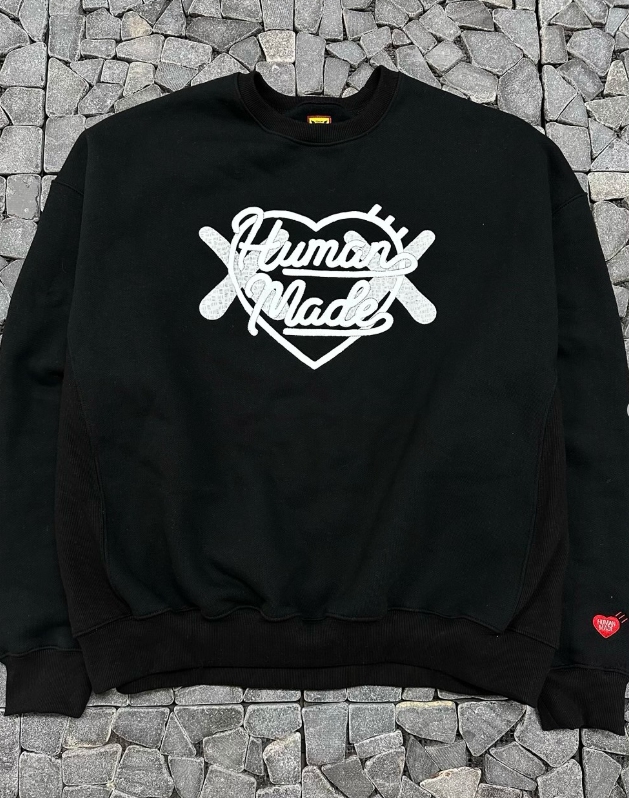 휴먼메이드 블랙 엑스로고 기모 맨투맨