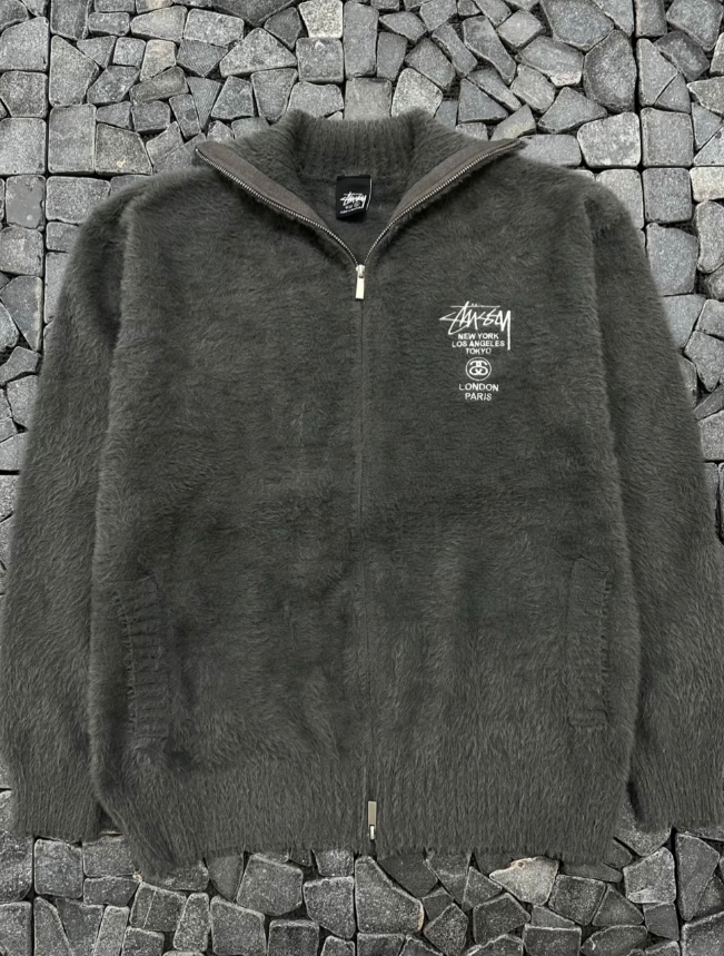 스투시 차콜 앙고라 니트집업