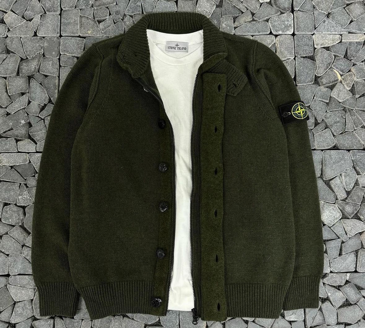 스톤아일랜드 카키 버튼 니트집업